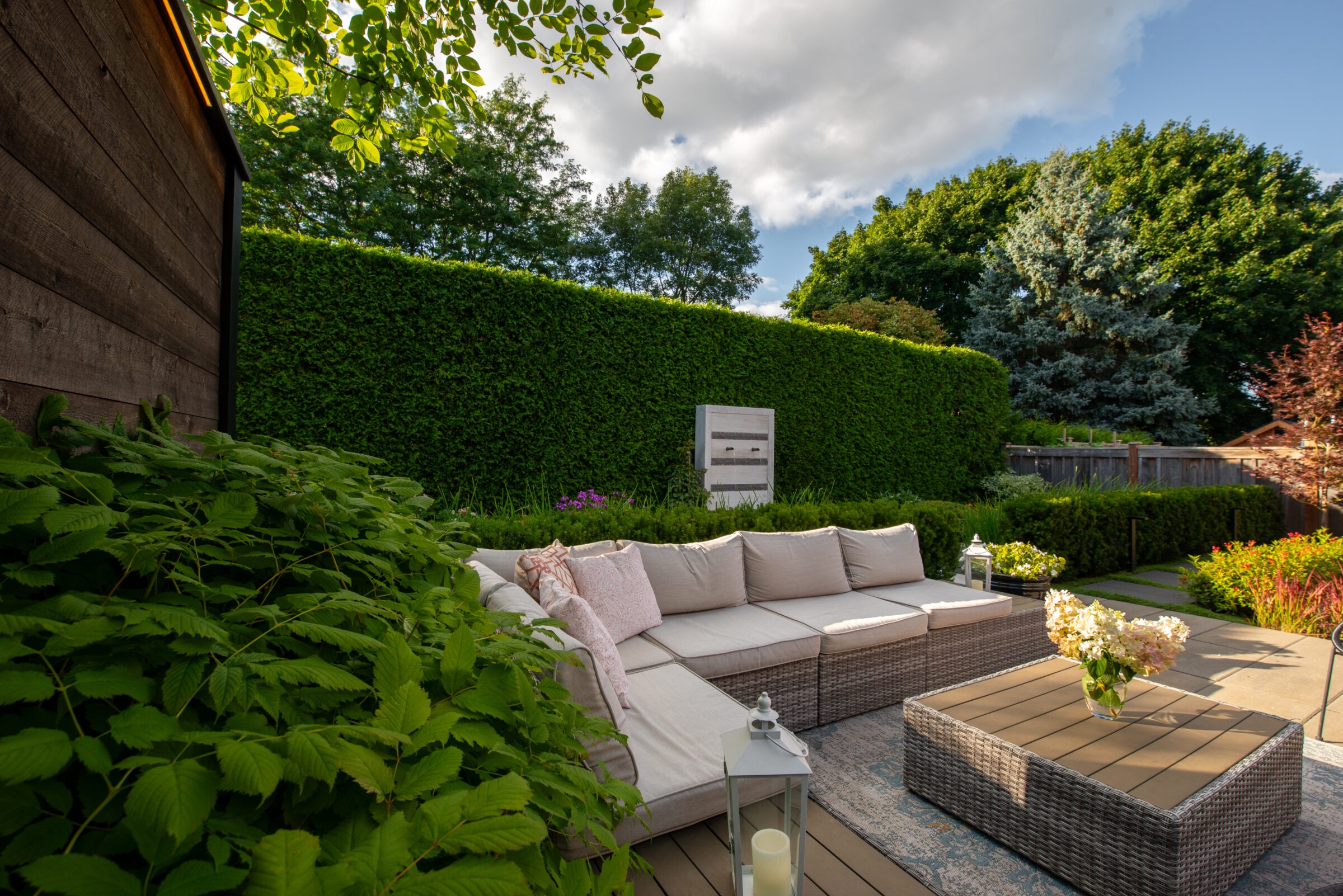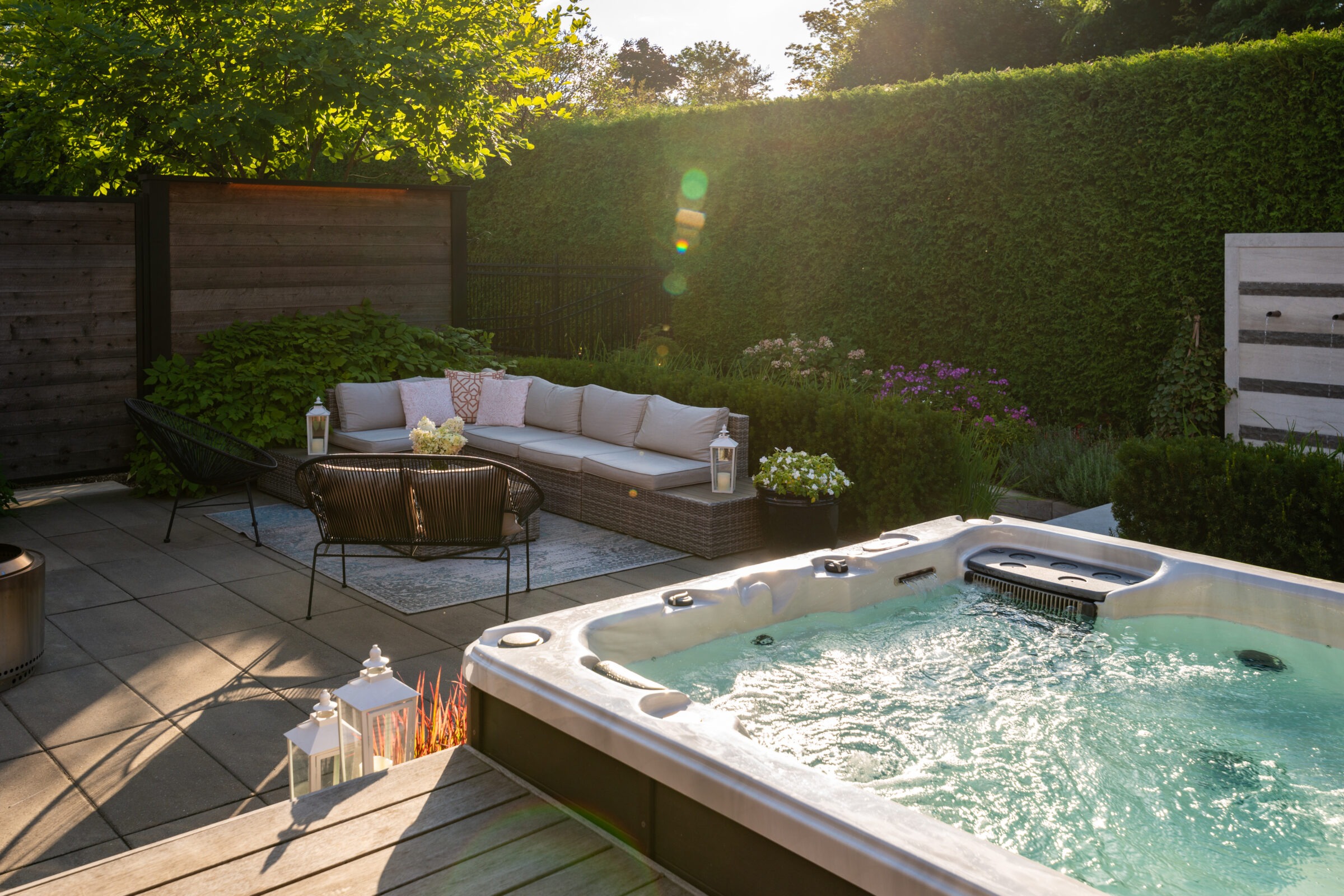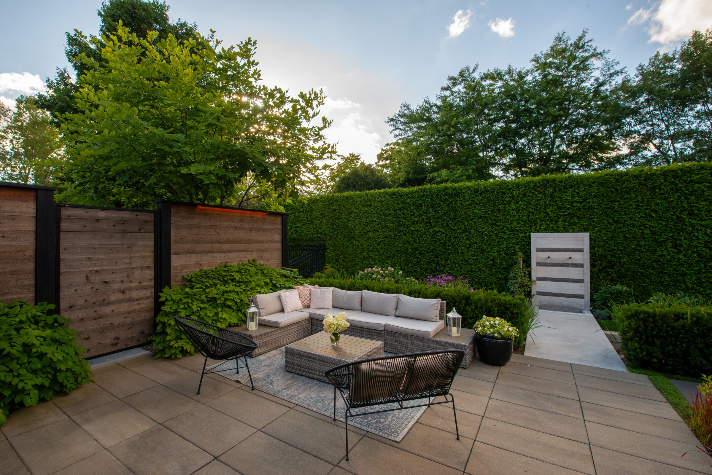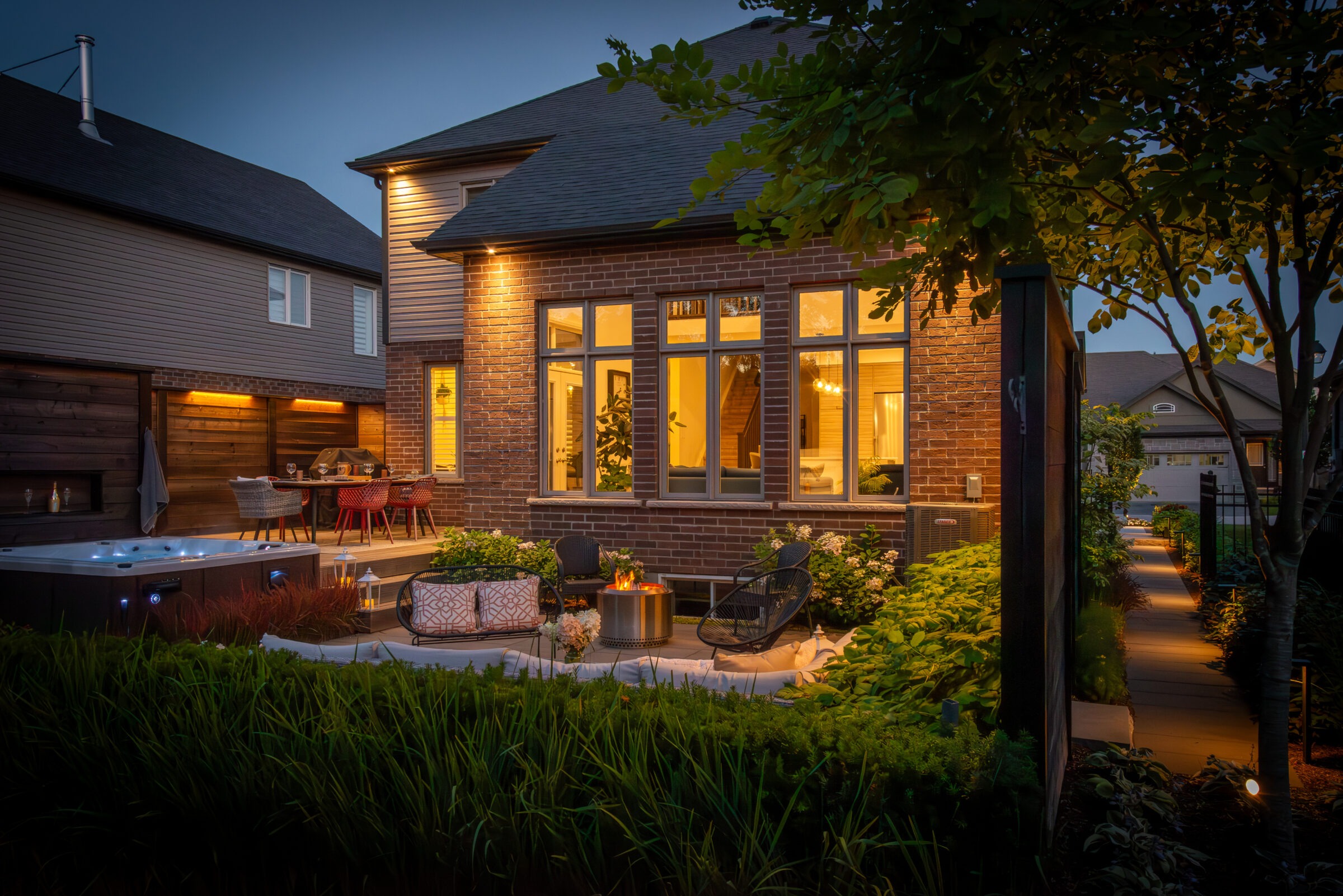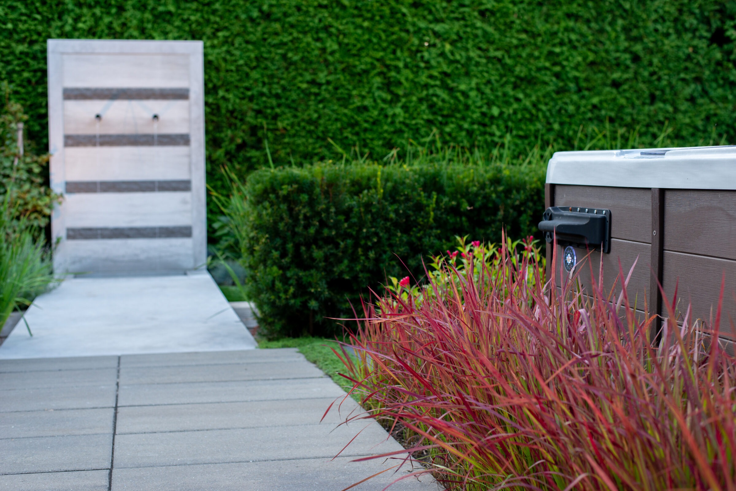Westminster Gardens was designed as a private retreat that blends relaxation, entertaining, and year-round enjoyment. The backyard was transformed into a modern yet timeless outdoor living space centered around a spa and lounge area framed by lush plantings and warm privacy screens. An expansive sectional and fire feature create cozy gathering spots, while a custom dining terrace invites family and friends to share meals outdoors. Carefully planned gardens, pathways, and accent lighting tie the spaces together, creating an inviting retreat that feels like an everyday escape at home.