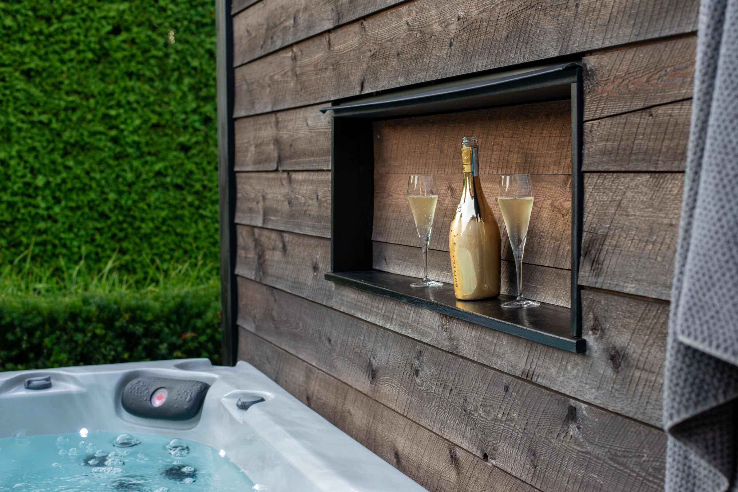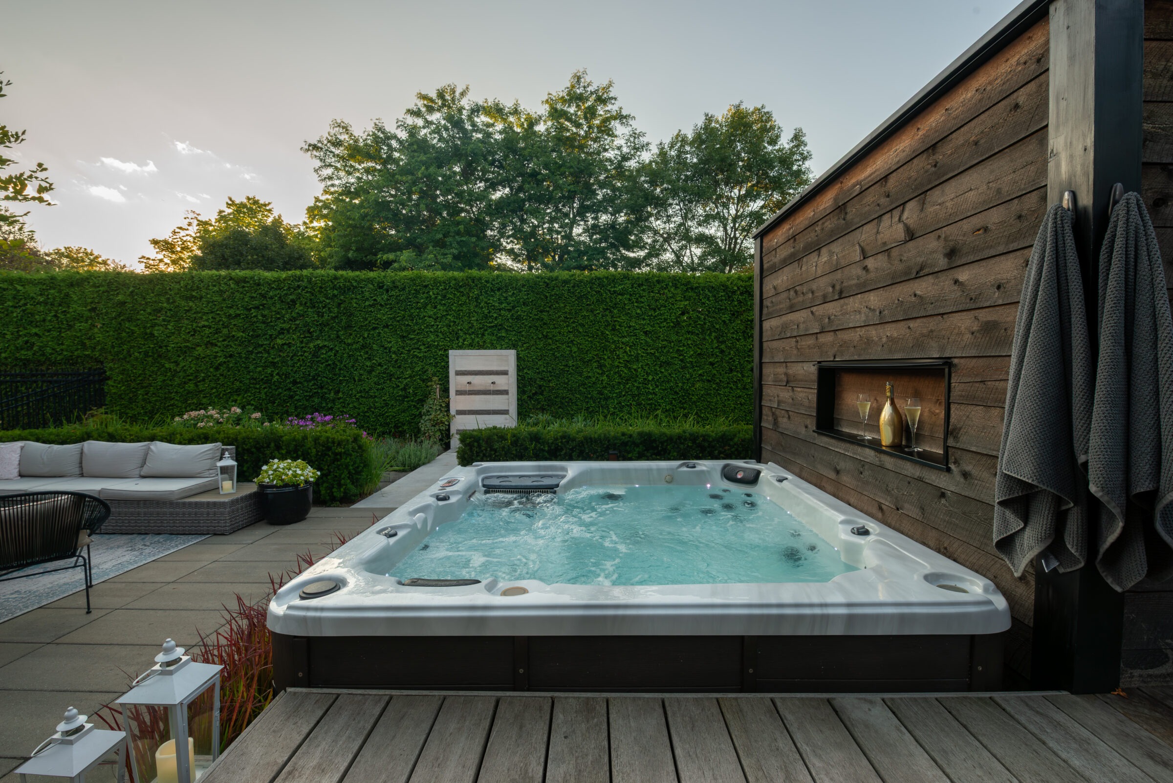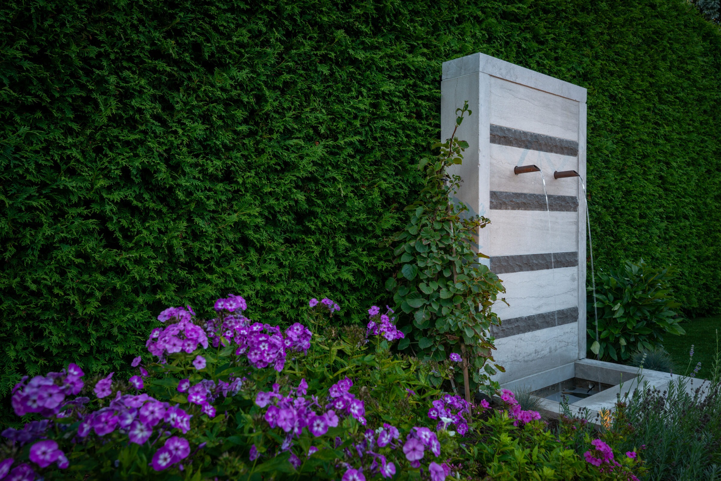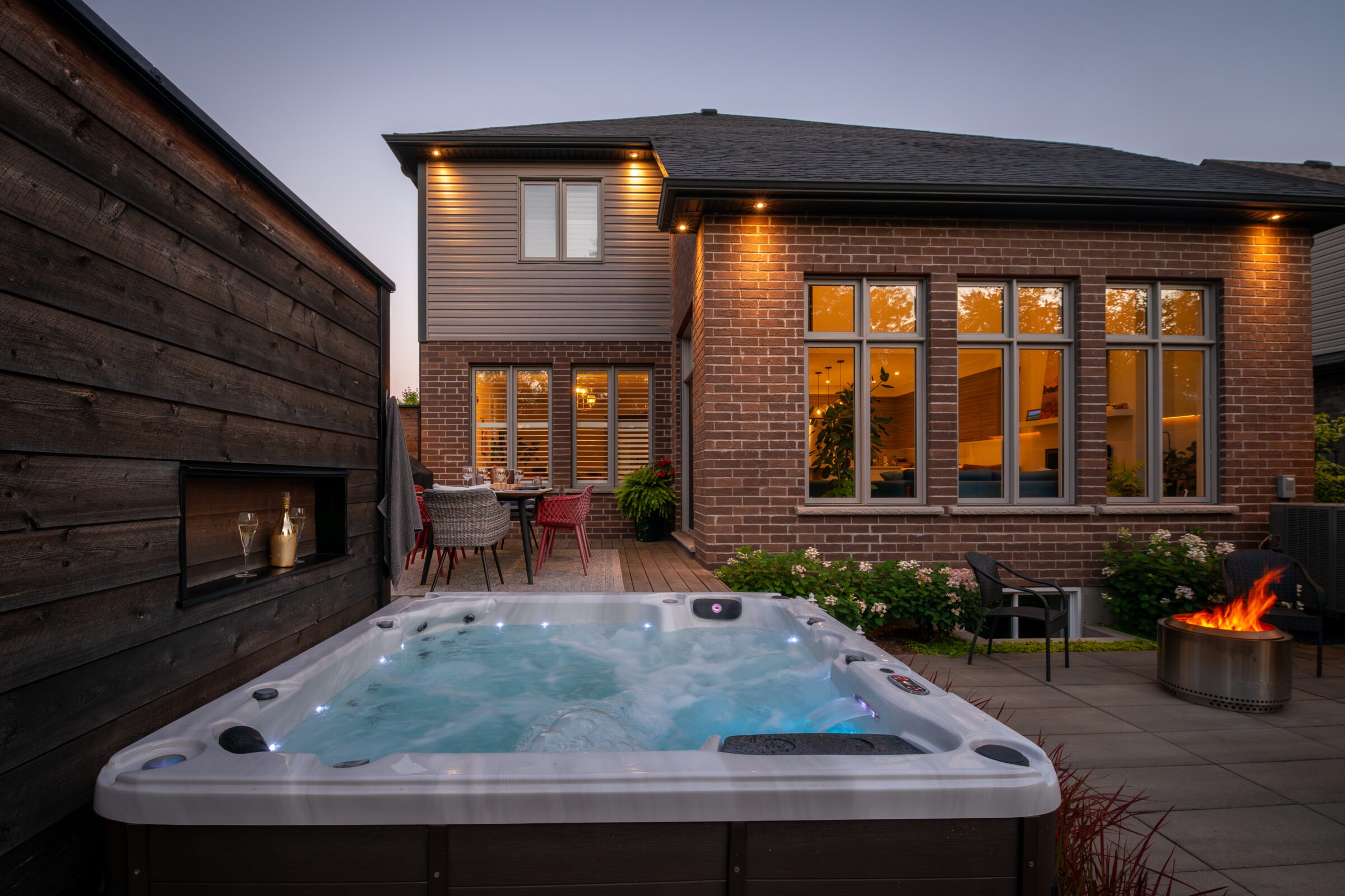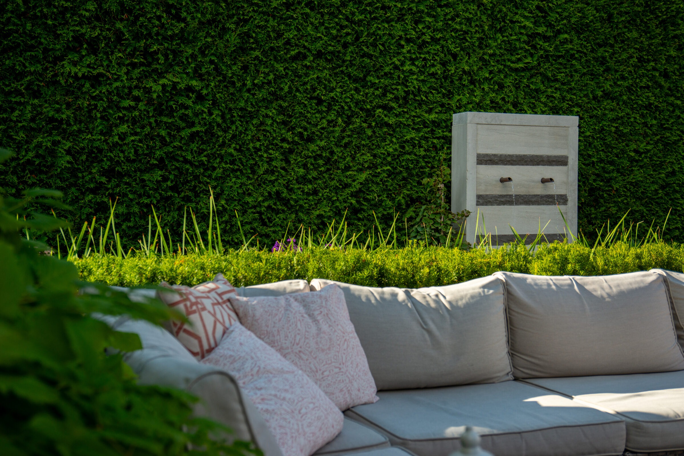 Westminster Gardens was designed as a private retreat that blends relaxation, entertaining, and year-round enjoyment. The backyard was transformed into a modern yet timeless outdoor living space centered around a spa and lounge area framed by lush plantings and warm privacy screens. An expansive sectional and fire feature create cozy gathering spots, while a custom dining terrace invites family and friends to share meals outdoors. Carefully planned gardens, pathways, and accent lighting tie the spaces together, creating an inviting retreat that feels like an everyday escape at home.